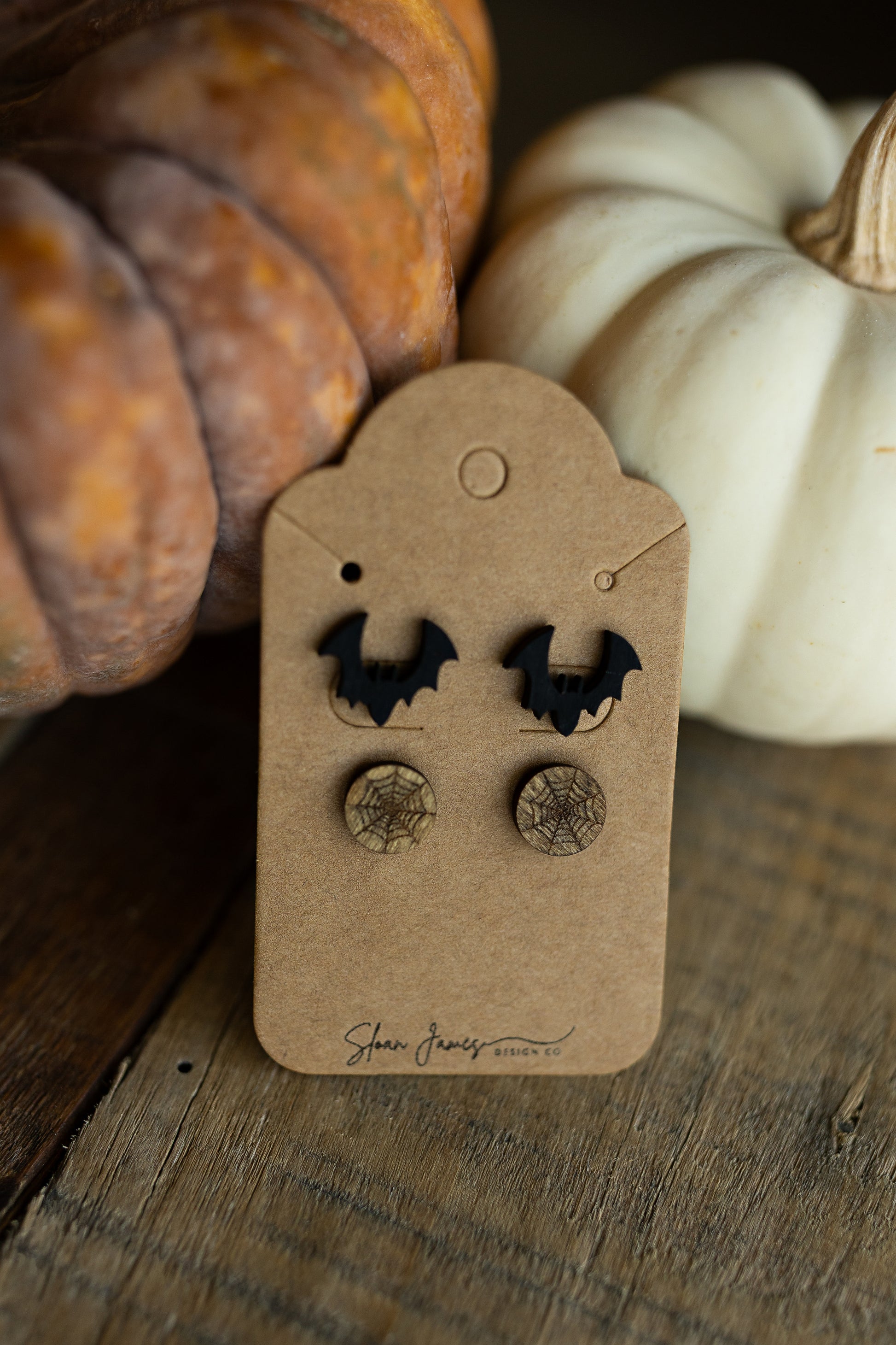 Add a spooky touch to your look with these Bat and Spider wood earrings. Lightweight and natural, they’re perfect for Halloween or anytime you want to show off some eerie style.